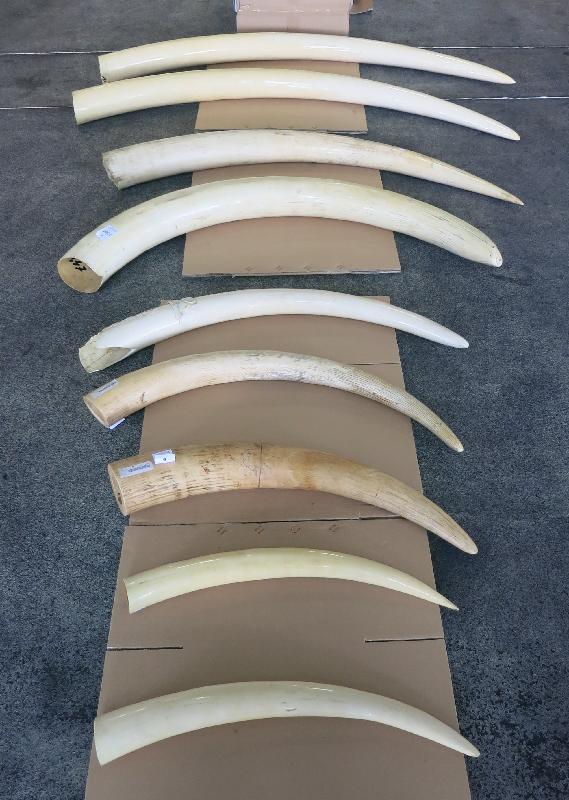 Customs officers intercepted an incoming truck declared to contain assorted goods at Lok Ma Chau Control Point for inspection and found the suspected ivory tusks on board the vehicle.