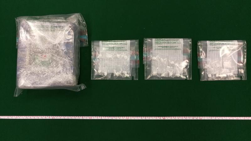 During an anti-narcotics operation in Lam Tin yesterday evening, Customs officers intercepted a man and found about 1kg of suspected cocaine inside a backpack carried by him. The man, aged 20, was arrested. After investigation, Customs officers escorted the arrested person to a residential premises nearby where a small quantity of suspected crack cocaine and a batch of drug packaging paraphernalia were seized.