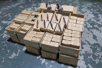 Through risk assessment, Customs officers inspected two containers arriving in Hong Kong from Jiangmen and Huangpu, the Mainland, destined for the United States of America and Canada respectively. Upon inspection, Customs officers found the suspected prohibited weapons. Investigation is ongoing.