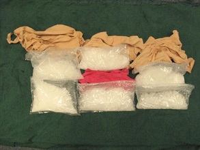 Hong Kong Customs yesterday (September 12) arrested three outgoing passengers at the Hong Kong International Airport and seized about 2.5 kilograms of methamphetamine (ice) with a value of about $1.7 million.