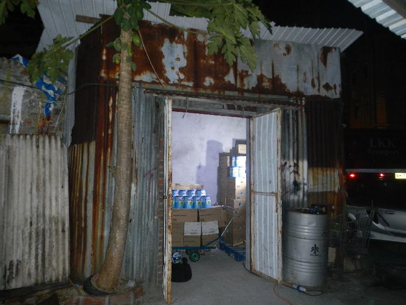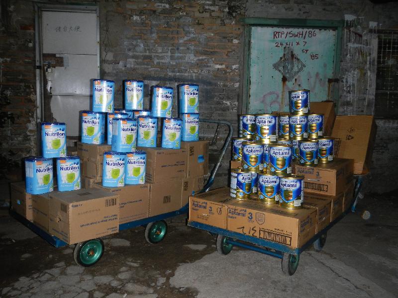 Hong Kong Customs today (December 19) cracked down on a suspected smuggling syndicate attempting to export unlicensed powdered formula by "ant-moving-home" approach. In the operation, two people were arrested at Lo Wu Control Point and a total of 17.6 kilogrammes of powdered formula (in 22 cans) for infants and children under 36 months (powdered formula) were seized. Meanwhile, a mastermind and two core members of the suspected syndicate were also arrested in a storage hut in Sheung Shui. Another 968.4 kilogrammes of powdered formula (in 1 076 cans/boxes), worth about $0.3 million, were seized therein.