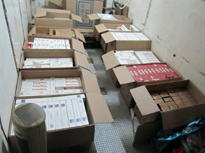 Following a series of anti-illicit-cigarette operations last month, the Customs continued to step up enforcement actions against illicit cigarette activities on all fronts. With comprehensive intelligence analysis, Customs officers intercepted a light goods vehicle in Sha Tin and seized about 400 000 sticks of illicit cigarettes with the arrest of a man and a woman. Subsequently, an illicit cigarette storage centre located in Sham Shui Po was smashed with the seizure of about 800 000 sticks of illicit cigarettes. One man was arrested.