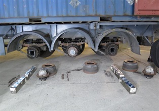 In the night of December 17, Hong Kong Customs intercepted an outbound container truck at Lok Ma Chau Control Point. A batch of used mobile phones were found in the false compartments of the axles of the trailer. Later, Customs officers searched a cargo yard in Tin Shui Wai where another batch of used mobile phones suspected for smuggling were seized.