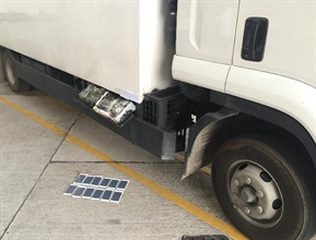 Customs officers intercepted an outgoing lorry at Lok Ma Chau Control Point for inspection this afternoon and seized 110 smartphones from the side storage of the lorry. The 44-year-old male driver was arrested. Investigation is ongoing.