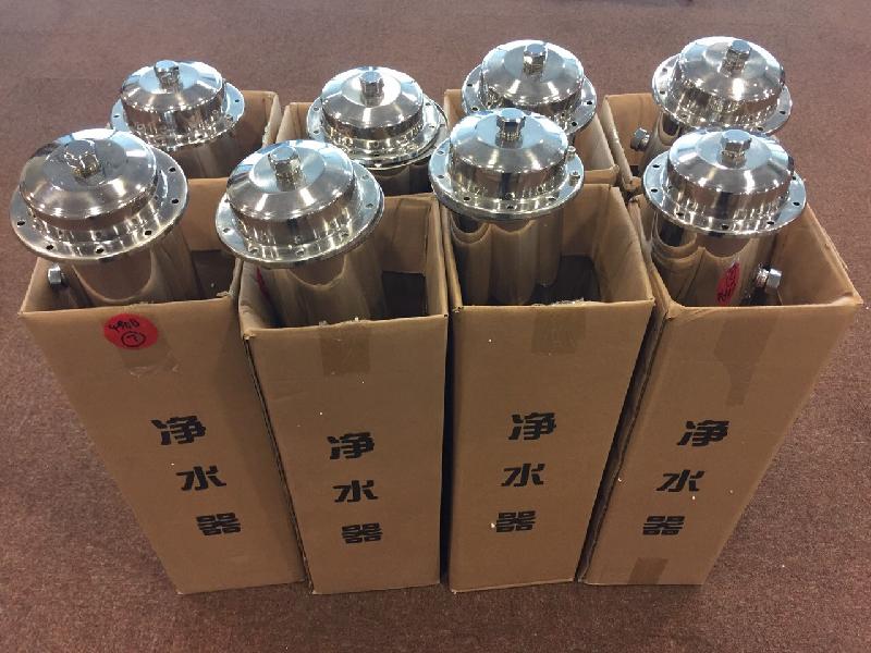 The suspected methamphetamine was detected in five transit express cargo consignments from the Mainland to Malaysia via Hong Kong. The consignments were declared to contain water filters. In the course of examination, Customs officers observed suspicious X-ray images of the cargoes. The metal cylinders of water filters were cut open and the suspected drugs were found concealed inside. The investigation is under way.