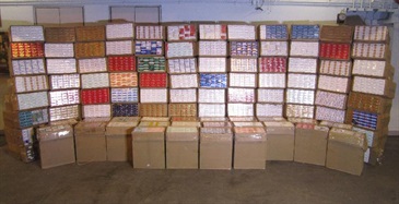 Customs officers intercepted an incoming truck declared as carrying assorted goods at Man Kam To Control Point yesterday morning. After inspection, Customs officers found the batch of suspected illicit cigarettes in 120 carton boxes mix-loaded with other goods on board the truck.