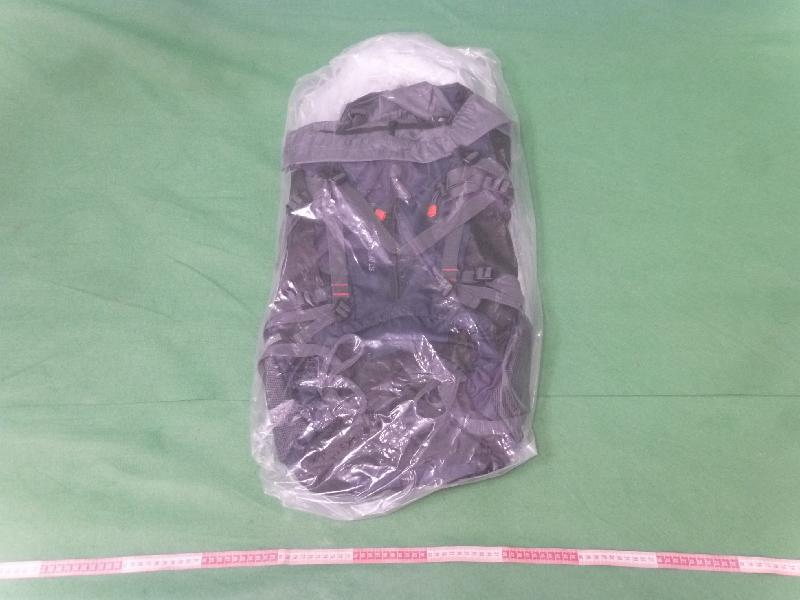 A 40-year-old female passenger arrived in Hong Kong from São Paulo, Brazil, via Amsterdam, the Netherlands, this afternoon. Upon examination of her check-in rucksack, Customs officers found one slab of suspected cocaine weighing about 2.3kg wrapped with sponge inside the false compartment of the rucksack. She was then arrested.