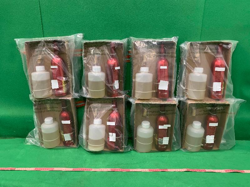 Hong Kong Customs seized about 6.8 kilograms of suspected liquid cocaine with an estimated market value of about $6.7 million at Hong Kong International Airport yesterday (August 8).