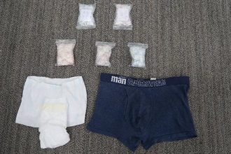 Hong Kong Customs yesterday (September 26) detected a trafficking in dangerous drugs case using underwear and a diaper, and seized about 190 grams of different kinds of suspected dangerous drugs with an estimated market value of about $200,000 at the Hong Kong-Zhuhai-Macao Bridge (HZMB) Hong Kong Port. This is the largest dangerous drug case detected by Hong Kong Customs at the HZMB Hong Kong Port since the bridge commenced operation in October 2018.