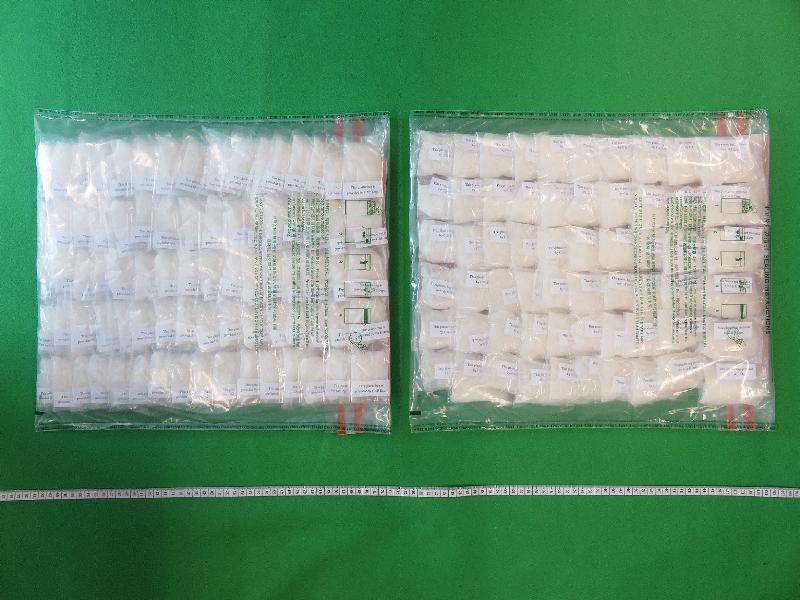 Customs officers inspected two air parcels arriving in Hong Kong from Malaysia on August 1. The batch of suspected ketamine was found in small packages and concealed inside 149 coffee powder packages.