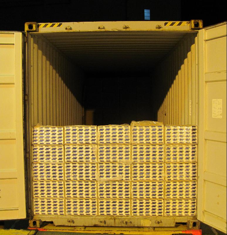 The container was destined for the United Kingdom via Hong Kong. Customs investigations are continuing and no arrest has been made so far.