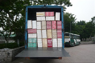 Based on intelligence analysis, Customs officers investigated the smuggling activities of a syndicate in Tin Shui Wai and carried out an operation yesterday. The officers found some workmen moving goods inside a truck at an outdoor carpark in Tin Shui Wai. In the course of interception, officers seized the batch of illicit cigarettes and arrested the truck driver.