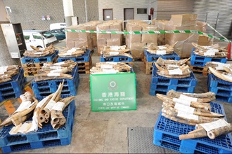 Customs Officers of the Ports and Maritime Command found 384 ivory tusks (weighing 1,550 kilogrammes) concealed inside the consignment during examination at Tsing Yi Container Terminal. After preliminary investigation, two males aged 46 and 48, were arrested and a follow-up investigation is still going on.