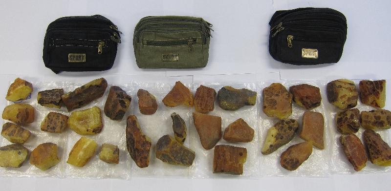 In the same afternoon, Customs officers intercepted two outgoing lorries at Lok Ma Chau Control Point and seized about 5.8kg of suspected smuggled agate in total with an estimated market value of about $580,000 from three waist bags found inside the driving compartments of the two lorries.