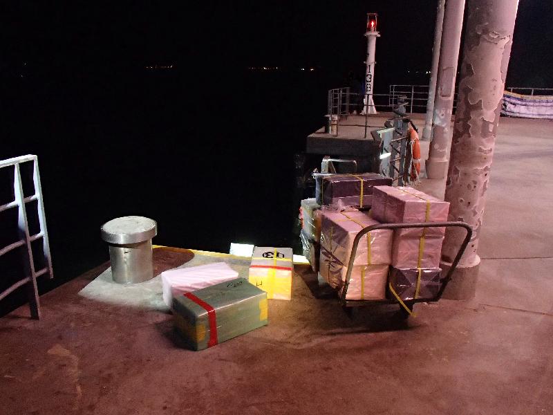 Officers from Hong Kong Customs and Marine Police found several suspicious men loading boxes of goods onto a speedboat at Wong Shek Public Pier last night and took immediate action. The suspects then fled in the speedboat, leaving the smuggled goods behind. Officers seized 15 boxes of high-valued electronic goods amounting to about $3 million in the operation. The investigation is on-going.