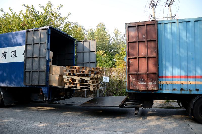 Conducting the anti-illicit cigarette operation in Kwu Tung, Sheung Shui, Customs officers successfully intercepted a goods vehicle delivering illicit cigarettes to a local illicit cigarette syndicate. The driver and three syndicate members were arrested. It is believed that the cigarettes were smuggled into Hong Kong by the goods vehicle via Lok Ma Chau Control Point and the driver conveyed the cigarettes to the remote area in Sheung Shui to the syndicate for distribution to various outlets with an attempt to reduce the risk of being detected.