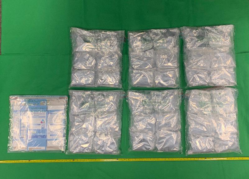 Customs officers inspected a consignment arriving in Hong Kong from Europe declared as cosmetics on that day at the Asia Airfreight Terminal. The batch of suspected ketamine was found concealed in milk powder packages inside three carton boxes. A 41-year-old man was arrested.