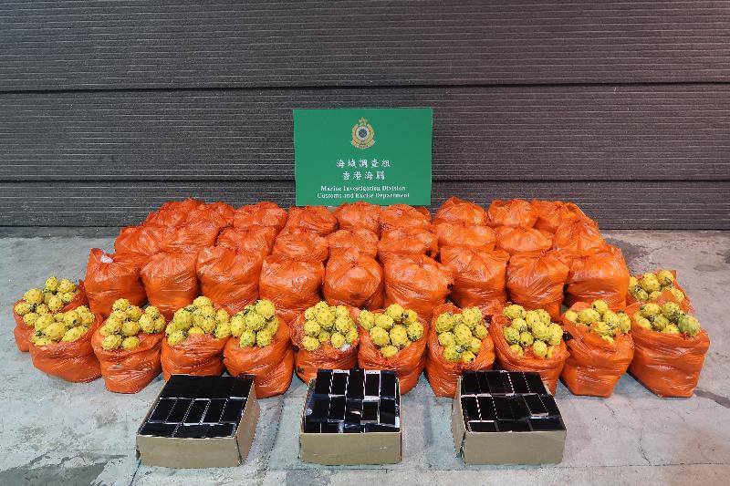 Hong Kong Customs and the Marine Police conducted a joint operation today (January 23) in the waters off Lau Fau Shan and seized about 556 kilograms of suspected smuggled kirin fruits and 430 suspected smuggled mobile phones with an estimated value of about $800,000.