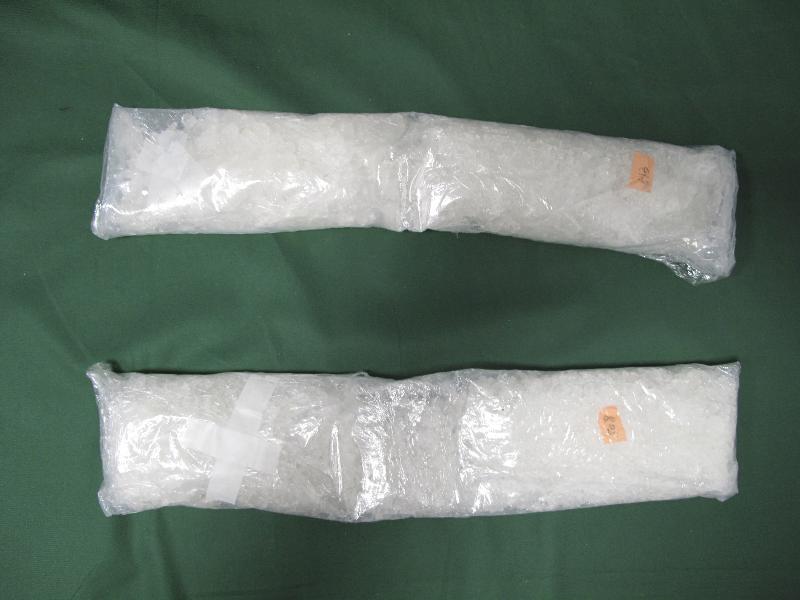 Hong Kong Customs today (January 29) arrested two outgoing passengers at Hong Kong International Airport and seized about one kilogramme of suspected methamphetamine with market value of about $0.46 million.