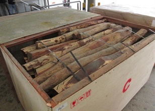 Through risk assessment, Customs officers inspected two containers arriving in Hong Kong from Thailand. Upon inspection, Customs officers found the suspected Dalbergia species wood logs in the containers.