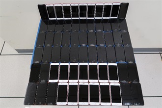 In the same afternoon, Customs officers intercepted an outgoing private car at Man Kam To Control Point and seized 66 smartphones from the battery compartment of the private car.
