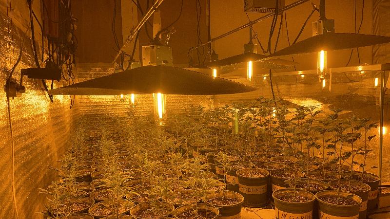 Customs officers first intercepted a 47-year-old man in the district, followed by a search of a nearby residential premises. A total of 1 043 suspected cannabis plants, about 5kg of suspected cannabis buds and a batch of suspected cannabis growing equipment, including solar lamps, ventilation facilities and carbon dioxide generators were seized. The man was subsequently arrested.