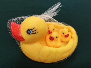 Hong Kong Customs today (August 6) reminded members of the public to stay alert to a model of unsafe plastic duck toy set (made up of one big duck and three small ducks). Test results indicated that the big duck's small part and the small ducks could pose suffocation risks to children. It was also found that the amount of phthalates (a type of plasticiser) contained in the toy exceeded the limit stipulated in the Toys and Children's Products Safety Ordinance (TCPSO) and its subsidiary legislation. To avoid an accident, parents should immediately stop their children playing with the toy set. Traders should also remove the toy set from their shelves.