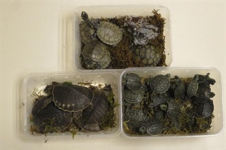 Customs officers intercepted an incoming private car at Shenzhen Bay Control Point for inspection yesterday and found the live turtles inside the luggage of a passenger. The 19-year-old man was arrested.