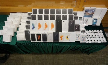 After an in-depth investigation with the assistance of trademark owners, Customs took enforcement action yesterday and raided 12 shops. A total of 36 smartphones with suspected false trade descriptions applied or with suspected false trademarks and about 3 000 pieces of suspected counterfeit smartphone accessories were seized. A total of 17 shop owners and salespersons were arrested.