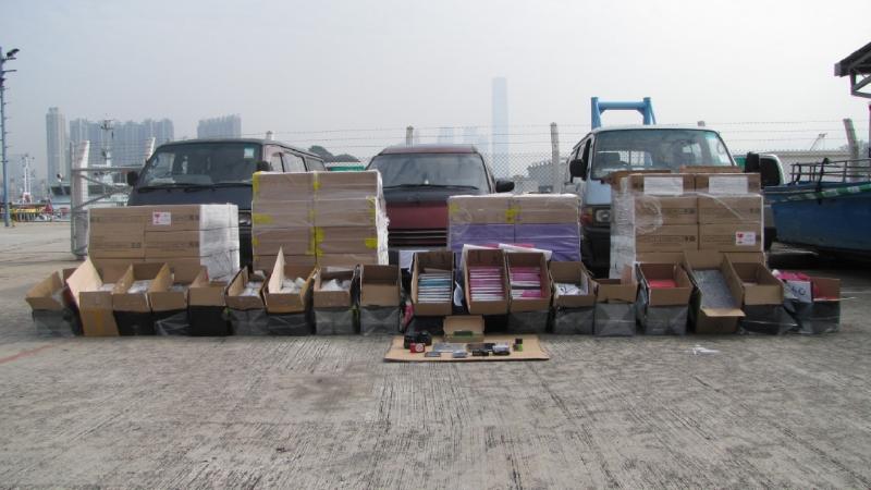 The officers subsequently seized 145 boxes containing 210 tablet computers, 3 511 hard disks, 12 700 USB and 114 digital cameras totally worth about $5.3 million on the two light goods vehicles and the seven-seat private car as well as on the adjacent seashore.