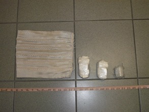 Customs officers in the afternoon intercepted the man on Pitt Street, Yaumatei, Kowloon and found three packets of heroin beneath his waistband, totally about 189 grammes. He was then charged with one count of trafficking in a dangerous drug and will appear at the Kowloon City Magistrates' Courts tomorrow (November 3).