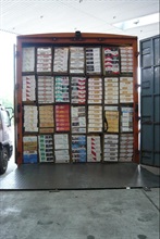 Early this morning, Customs officers intercepted for inspection a lorry which declared in its manifests with paper bags and buttons. However, the image of X-ray examination showed that it was carrying different goods. After a thorough examination of the lorry, Customs officers found the cigarettes in three large wooden boxes. The man was arrested and will be charged under the Import and Export Ordinance.