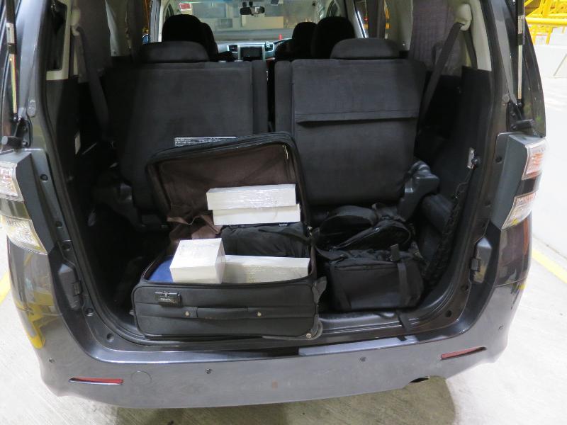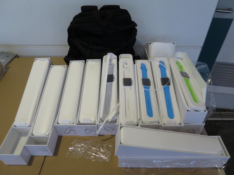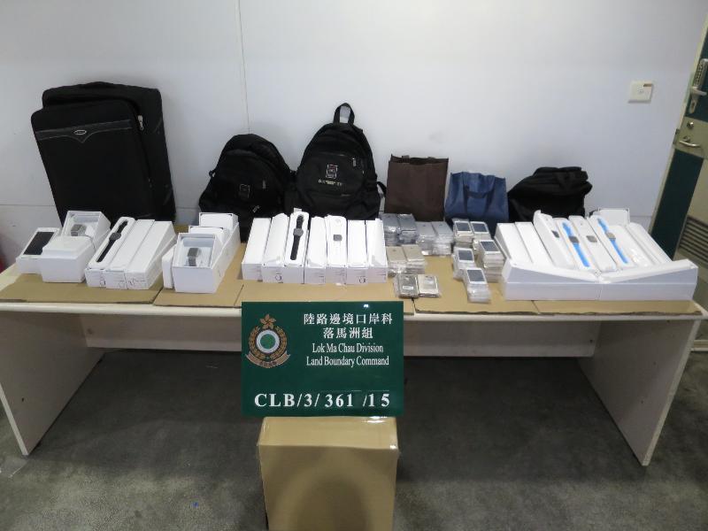 Customs officers intercepted an outgoing 7-seated private car yesterday evening and seized the smart watches and smartphones inside a backpack at the middle passenger compartment and the luggage in the boot of the vehicle upon examination.