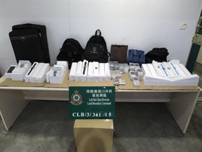 Hong Kong Customs smashed a suspected smuggling case of smart watches and smartphones by a cross-boundary private car at Lok Ma Chau Control Point yesterday (April 25) and seized a total of 26 smart watches of the latest model and 132 smartphones worth about $599,000. A 45-year-old female driver and a 34-year-old male passenger were arrested.