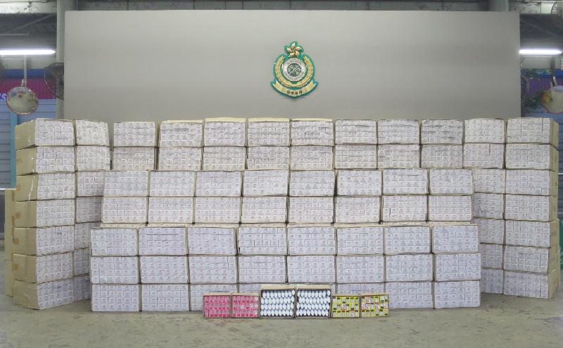 Hong Kong Customs yesterday (May 23) seized about 2.2 million suspected illicit cigarettes with an estimated market value of about $5.8 million and a duty potential of about $4.1 million at Kwai Chung Customhouse Cargo Examination Compound.