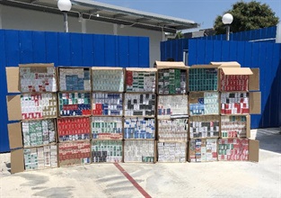 During an anti-illicit cigarette operation in Yuen Long this morning, Customs officers intercepted a man and found about 50 000 suspected illicit cigarettes from a light goods vehicle beside him. Later, Customs officers further seized about 450 000 suspected illicit cigarettes from a metal hut nearby.