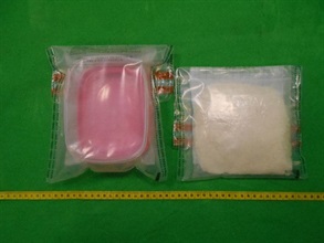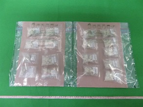 Customs officers intercepted another 30-year-old man in Mong Kok on the same night and found about 1 kilogram of suspected methamphetamine inside a plastic bag carried by him. Subsequently, the arrested person was escorted to a residential premises in the vicinity where a batch of drug packaging paraphernalia was seized. Small amounts of suspected methamphetamine and crack cocaine were further seized in his residence in Yau Tong.