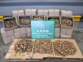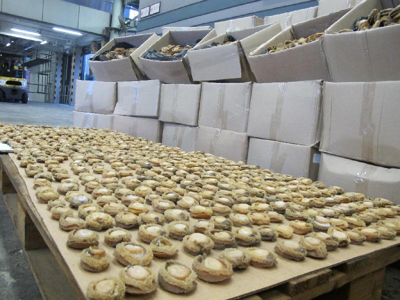 Hong Kong Customs today (May 9) detected a sea-bound suspected cargo smuggling case and seized 989 kilogrammes of dried abalones from a container at the Kwai Chung Customhouse Cargo Examination Compound. The total value of the seizure was about $2.8 million.