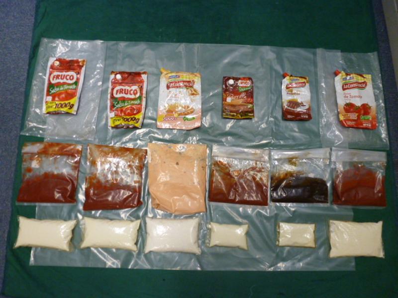 The two men were arriving from São Paulo, Brazil via Johannesburg, South Africa yesterday afternoon. Customs Officers found several packs of food dressing amongst their personal belongings during baggage examination. This aroused Customs officers' suspicion and inspected the packs of food dressing thoroughly. Subsequently, Customs officers unveiled the cocaine inside the ten packs of food dressing.