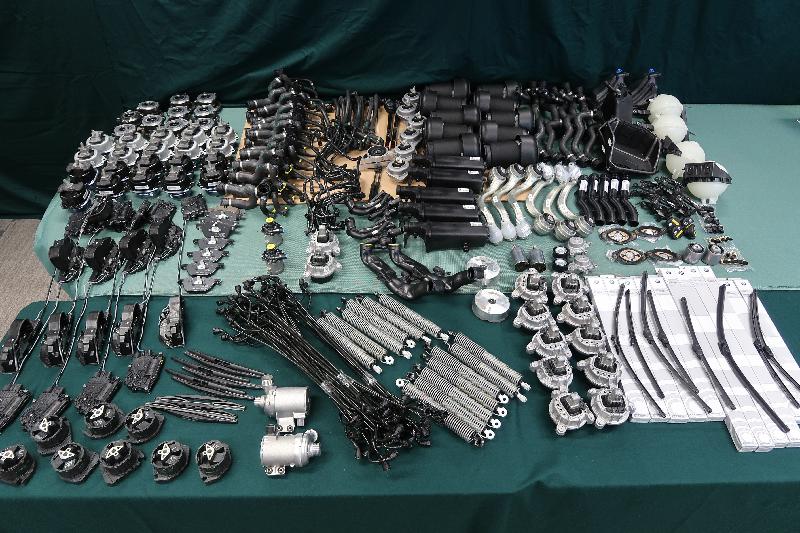 Customs officers intercepted an outgoing private car at Shenzhen Bay Control Point yesterday afternoon and seized 59 vehicle parts underneath the passenger seat and in the boot of the car. The 58-year-old male driver and the 41-year-old female passenger were arrested.