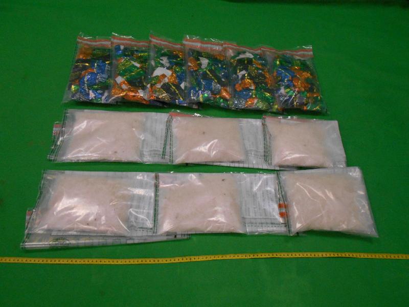 A male passenger arrived in Hong Kong from Johannesburg, South Africa yesterday. Upon examination of his luggage, Customs officers found the batch of suspected methamphetamine wrapped as chocolates. The man was then arrested.