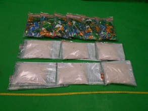 Hong Kong Customs yesterday (June 30) seized about 2.8 kilograms of suspected methamphetamine with an estimated market value of about $1.5 million at Hong Kong International Airport.