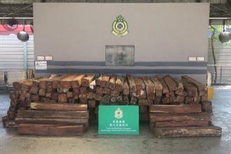 Through risk assessment, Customs officers inspected a container arriving in Hong Kong from Guatemala. Upon inspection, Customs officers found the suspected Guatemalan rosewood in the container.
