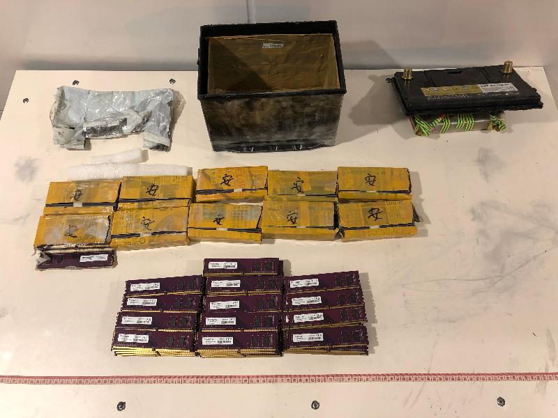 Hong Kong Customs yesterday (July 17) seized 489 suspected smuggled computer central processing units (CPUs), 381 suspected smuggled computer RAM units and 188 suspected smuggled smartphones respectively at Sha Tau Kok Control Point, Lok Ma Chau Control Point and Shenzhen Bay Control Point with an estimated market value of about $1.5 million in total.