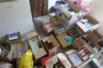 Customs officers today also seized about 1 million suspected illicit cigarettes in an iron hut in Yuen Long. A 27-year-old man was arrested.