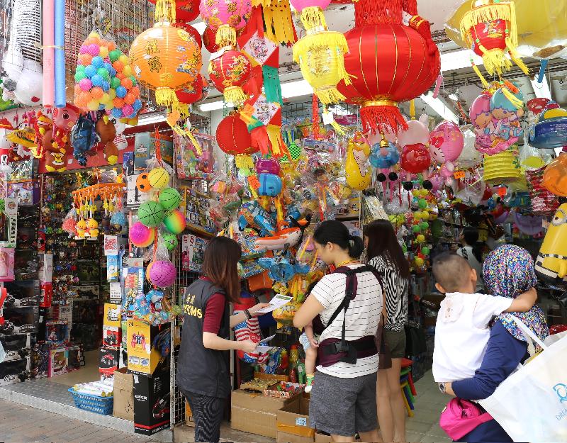 Hong Kong Customs today (September 20) distributed pamphlets in Sham Shui Po, Mong Kok and Wan Chai to remind members of the public, especially parents, about safety of Mid-Autumn Festival toys and to pay attention to the warnings and usage instructions on them.
