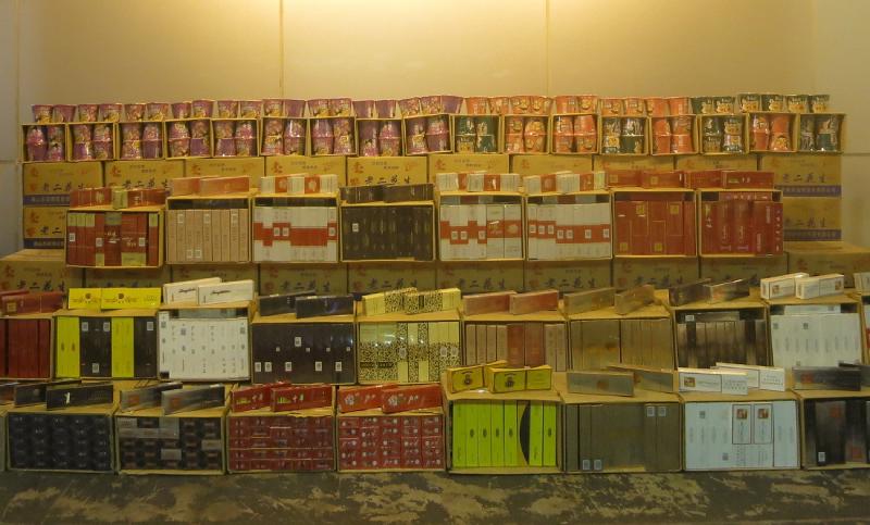 Hong Kong Customs yesterday (October 4) seized about 300 000 suspected illicit cigarettes with an estimated market value of about $800,000 and a duty potential of about $600,000 together with 2 705 cartons of unmanifested assorted goods with an estimated market value of about $300,000 at the River Trade Terminal Cargo Examination Compound in Tuen Mun.