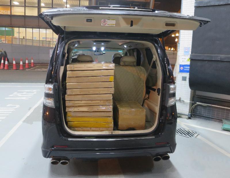 Customs officers intercepted an incoming private car at Shenzhen Bay Control Point yesterday afternoon and found the batch of suspected manufactured fireworks in the boot of the car.