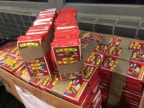 Hong Kong Customs yesterday (October 9) seized 13 boxes of suspected manufactured fireworks weighing about 80 kilograms in total with an estimated market value of about $2,000 at Shenzhen Bay Control Point.