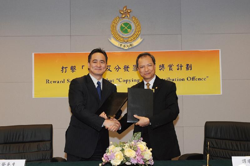 The Customs and Excise Department (C&ED), the Hong Kong Copyright Licensing Association (HKCLA) and the Hong Kong Reprographic Rights Licensing Society (HKRRLS) today (February 16) jointly launched the "Reward Scheme to Combat Copying and Distribution Offence".
